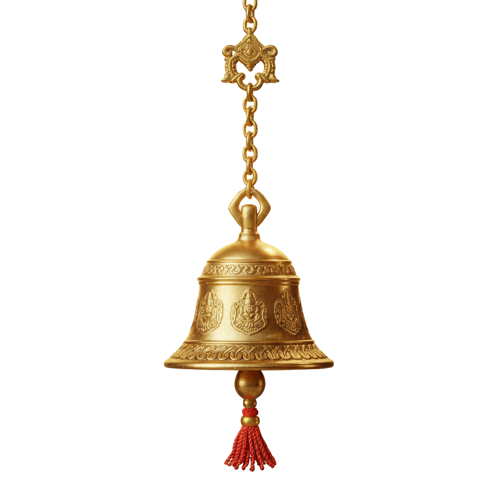 3D Brass Bell PNG Free Download | Traditional Ghanti Transparent Image