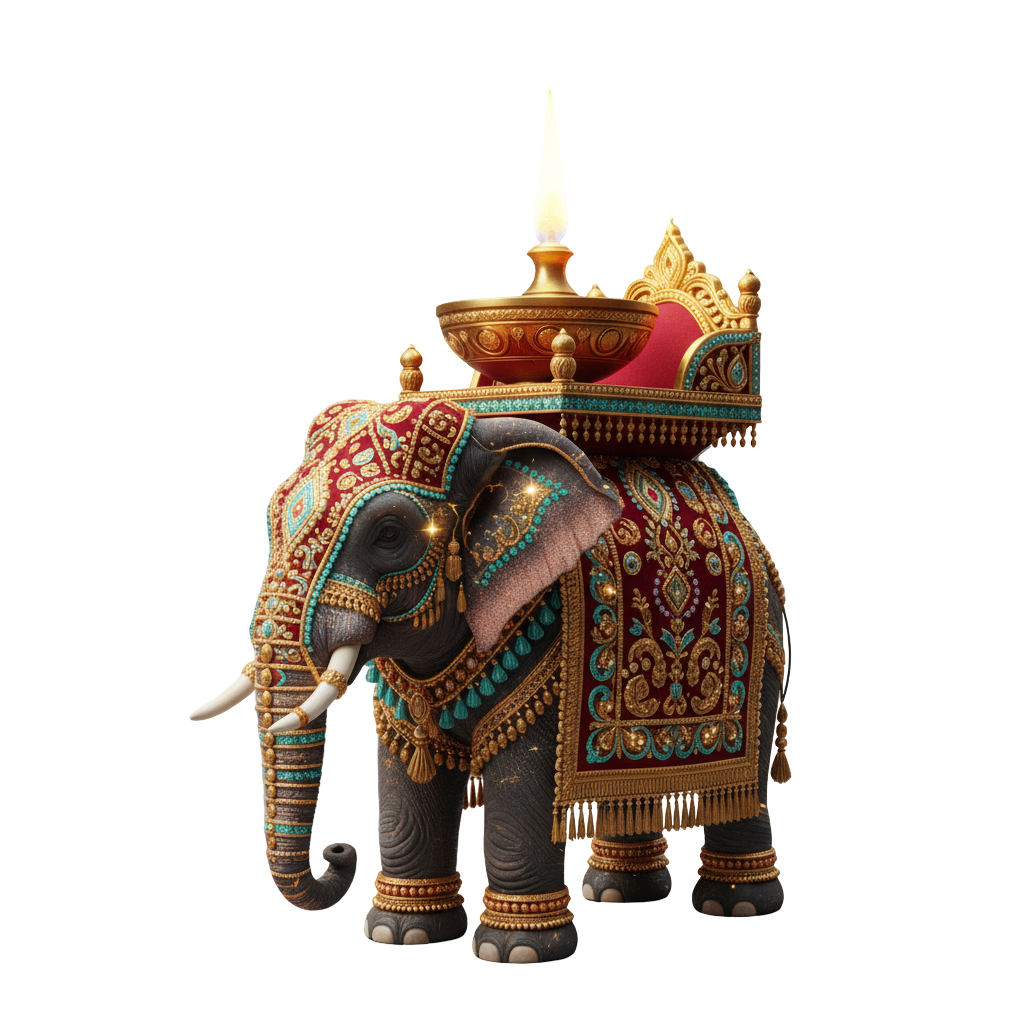 Our 3D decorated royal elephant PNG is a majestic design featuring a glowing diya on its back, adorned with vibrant festive Indian patterns. This stunning transparent PNG is perfect for Diwali, cultural festivals, wedding invitations, posters, and more.