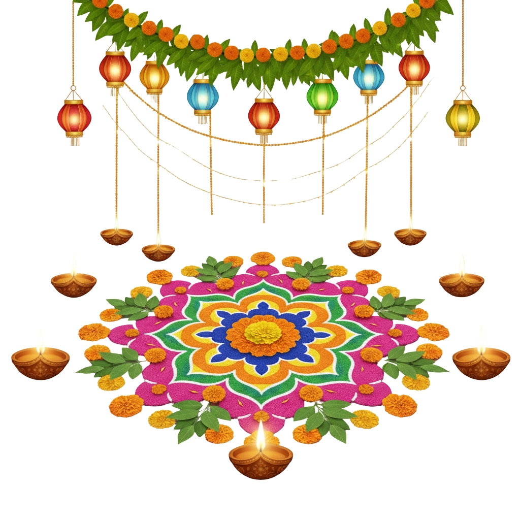 3D Diwali Festival Scene PNG – Free 4K Download with Diyas, Rangoli & Lanterns
