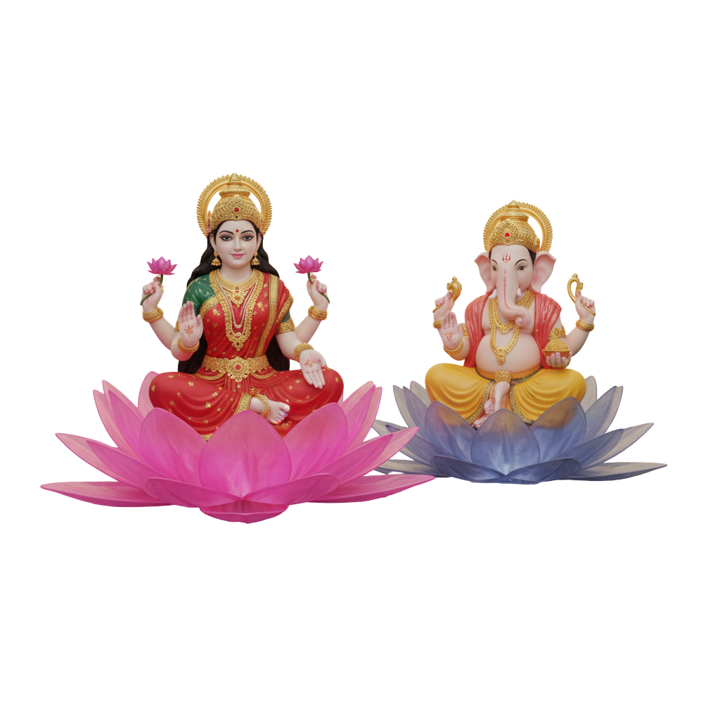 3D Lakshmi Ganesh PNG – Photorealistic Image for Diwali Designs