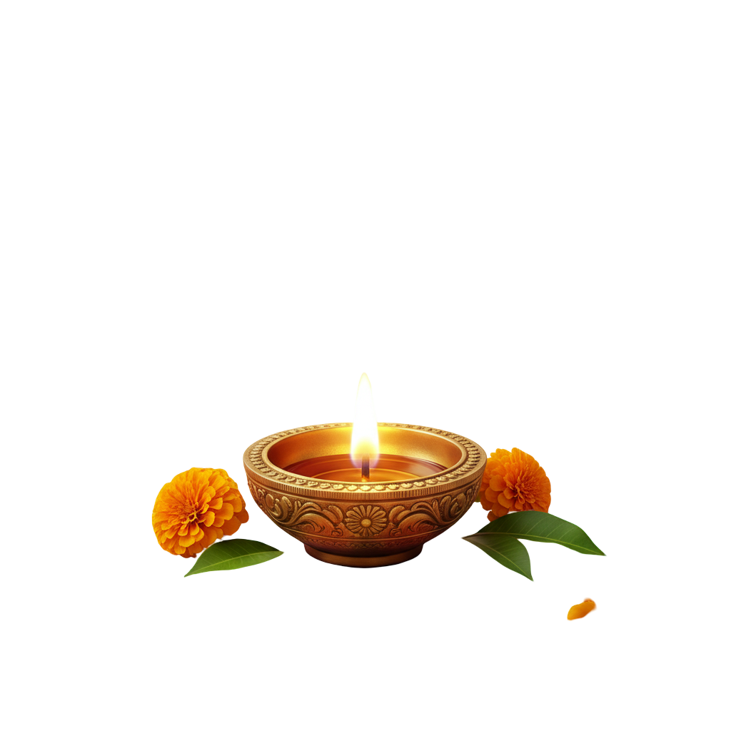 Enhance your Diwali and festive designs with this high-quality 3D photorealistic brass diya PNG. Featuring a beautifully crafted brass diya placed on an intricate decorative rangoli, this design comes with a warm golden flame that adds a divine glow to your projects. The diya is surrounded by scattered marigold petals, creating a traditional yet visually striking composition.