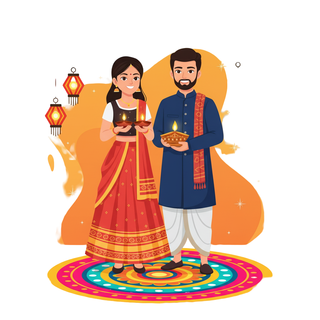 Celebrate Diwali with style by using this free Diwali couple clipart to brighten your designs. Download now and bring the spirit of festivity to your creative work.