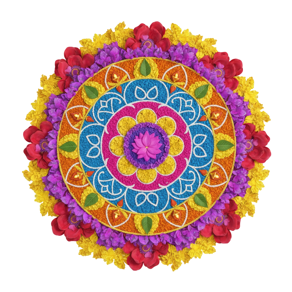 Diwali Rangoli PNG – Ultra-Detailed 3D Colorful Rangoli Design with Transparent Background