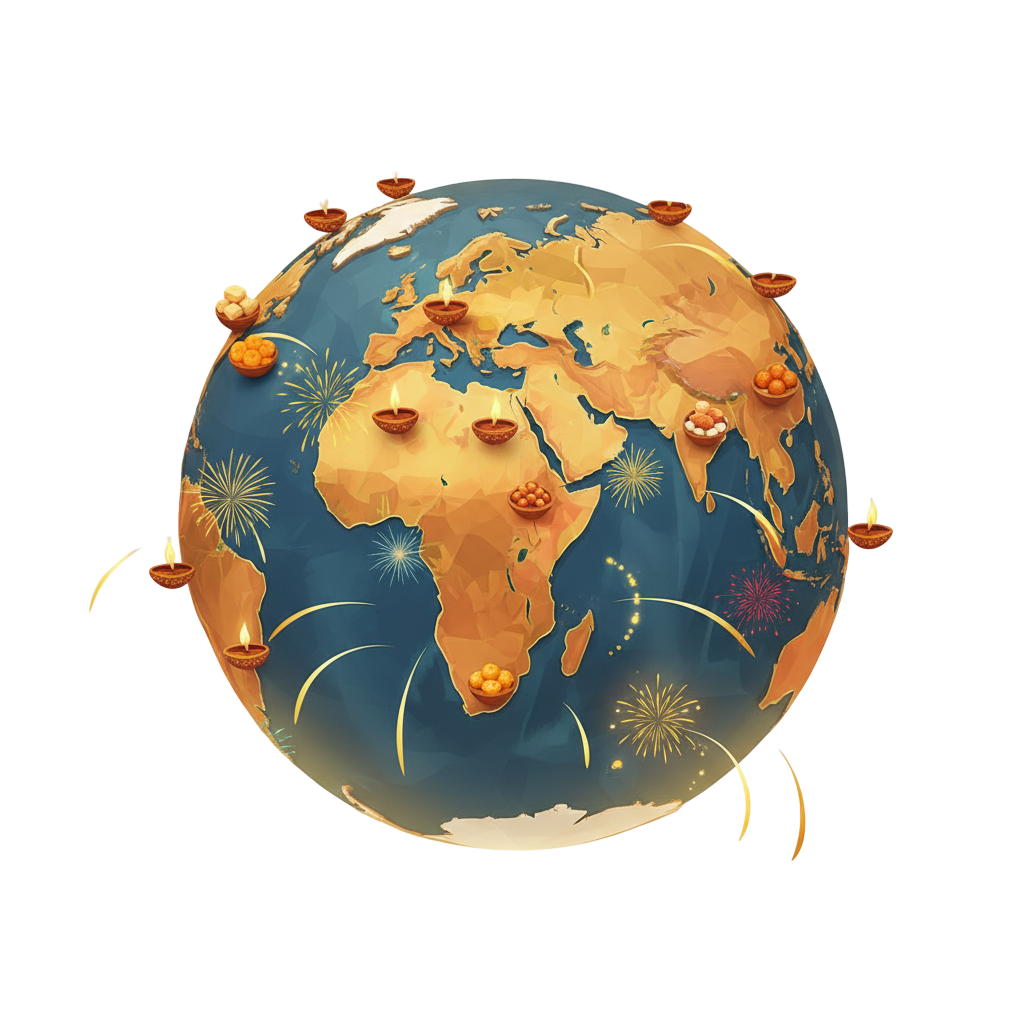 Illustrated 3D Earth Diwali Map PNG – A Global Celebration