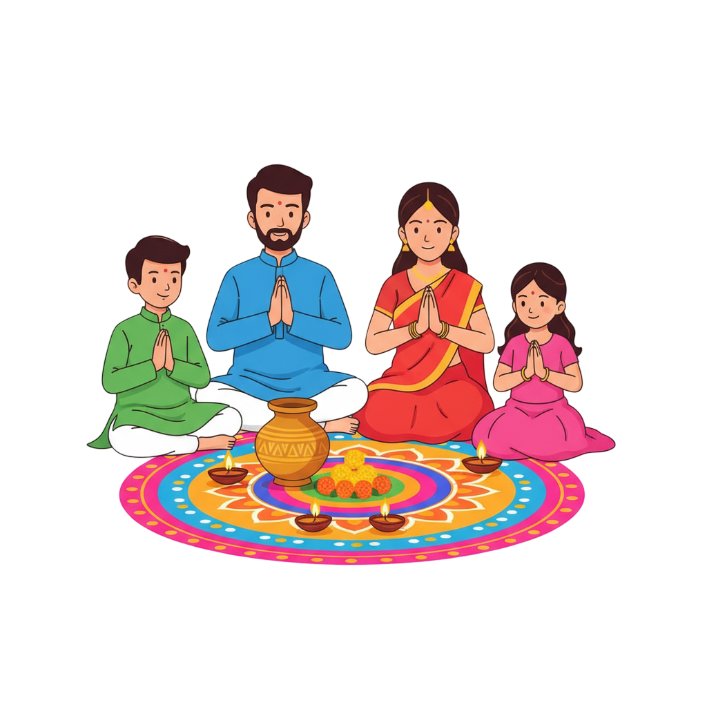 Indian Family Diwali Pooja Clipart – Free Vector PNG Download for 2025