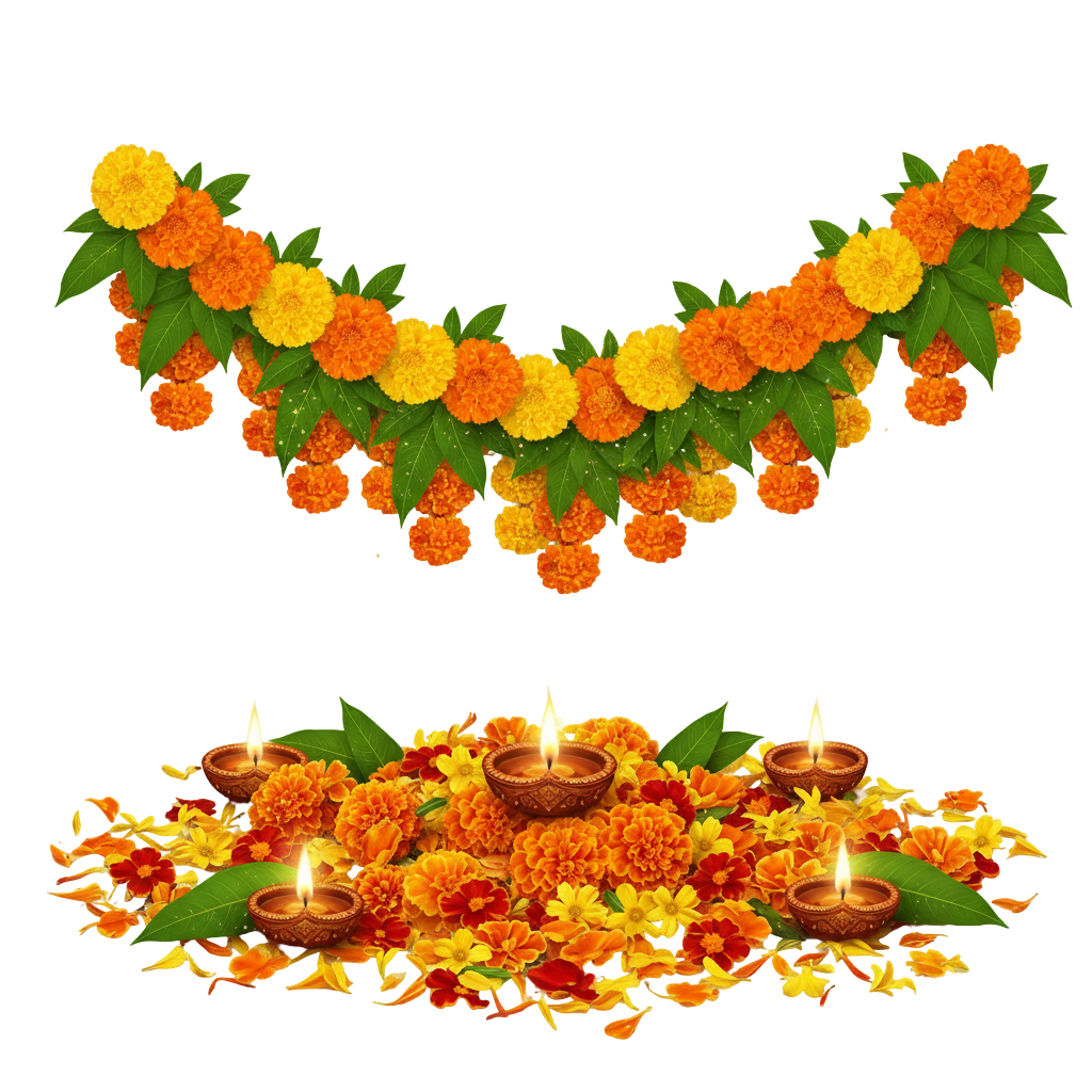 A Marigold Flowers Diwali Decoration with green leaves is not just festive décor but a cultural tradition. Whether for your home, temple, or celebration, this timeless floral arrangement adds elegance, prosperity, and divine blessings to Diwali.
