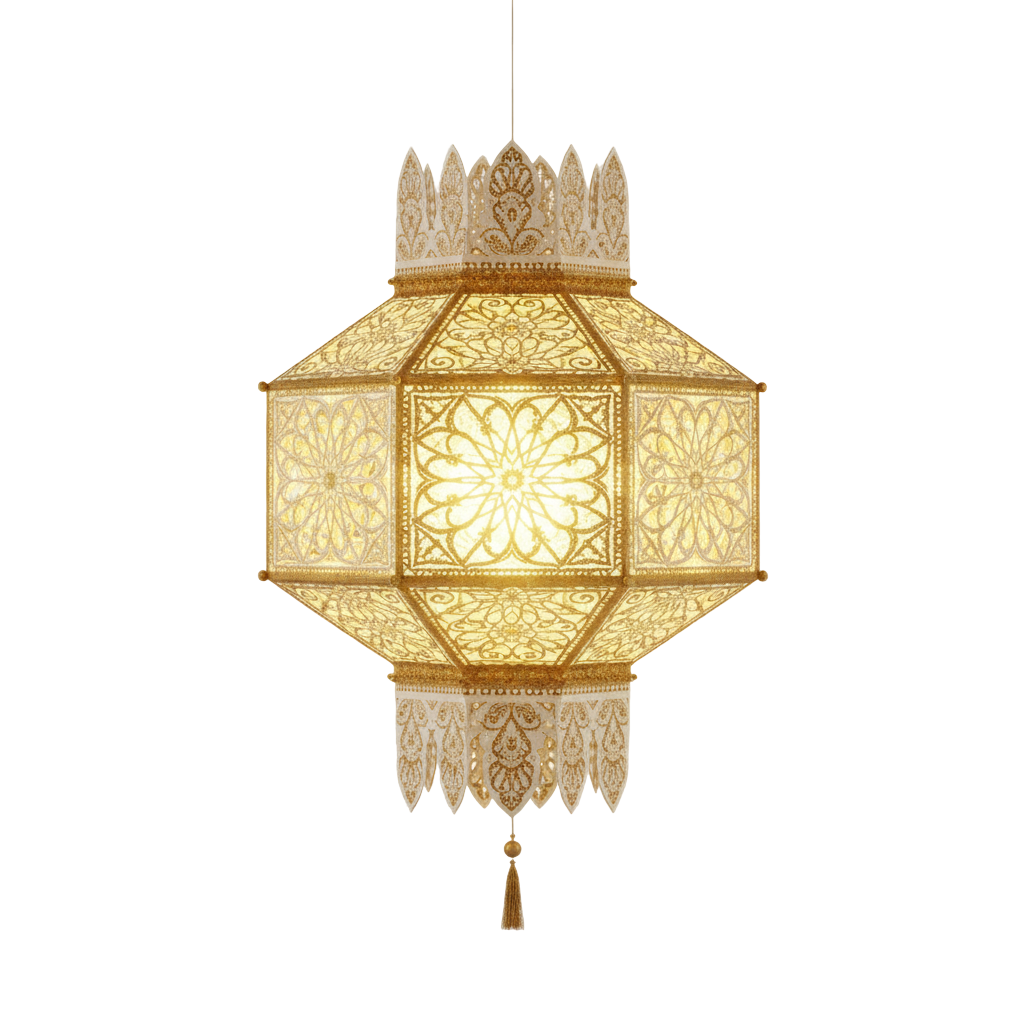 Beautiful Paper Lamp PNG with Warm Golden Glow