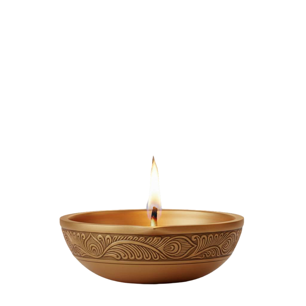 Bring the glow of Indian tradition to your creative projects with this Photorealistic 3D Diya PNG Free Download. Crafted with a brass base and elegant peacock feather motif, this diya shines with a warm golden flame and subtle smoke trail that adds realism to your design.