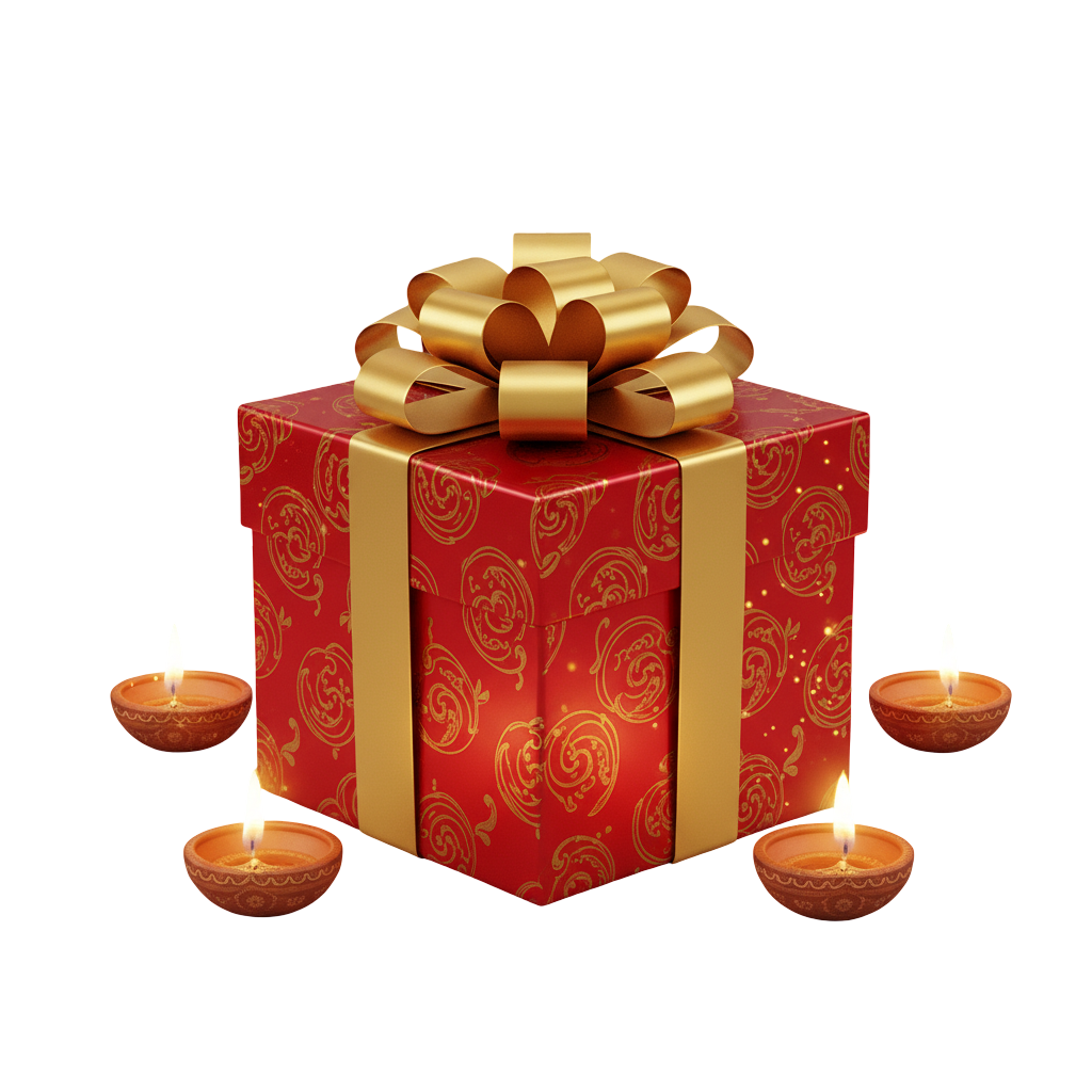 Make your festive designs stand out with our Realistic 3D Festive Gift Box PNG, beautifully wrapped in golden and red ribbon. This premium transparent background image includes tiny glowing diyas and sparkling accents, adding a luxurious feel to your designs. Perfect for Diwali, Christmas, New Year, and other celebrations.