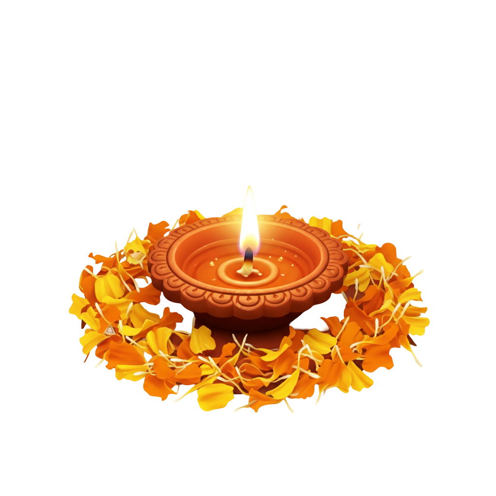 Bring the festive spirit to your designs with this Small Decorative Diya PNG. Featuring a glowing light effect and surrounded by vibrant marigold petals, this image adds warmth and tradition to your digital artwork. Perfect for Diwali posters, social media posts, greeting cards, and other festive projects.